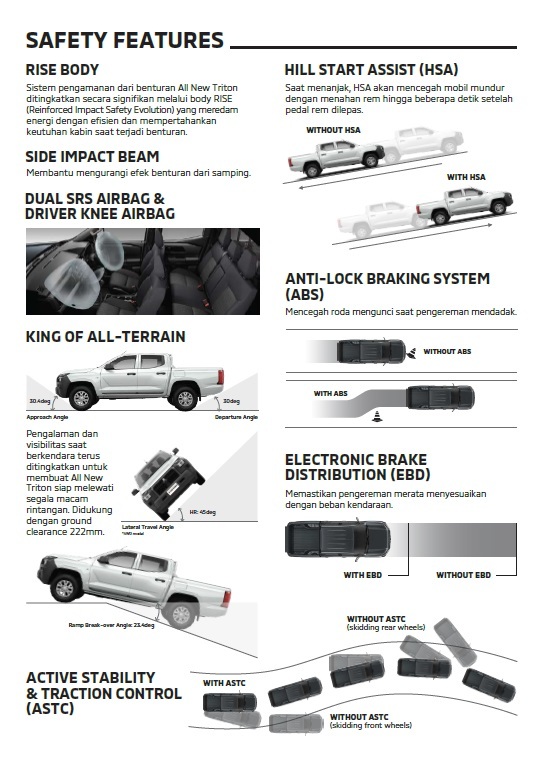 Mitsubishi All New Triton hadir dengan berbagai fitur dan spesifikasi terbaru yang dirancang untuk memenuhi kebutuhan pengendara modern. Dengan desain yang lebih tangguh dan aerodinamis, Triton menawarkan performa yang optimal di berbagai jenis medan. Dalam pembaruan ini, Mitsubishi tidak hanya fokus pada penampilan, tetapi juga memberikan kenyamanan dan kecanggihan teknologi yang mendukung pengalaman berkendara yang lebih baik. Temukan berbagai fitur inovatif dan spesifikasi terbaru yang menjadikan All New Triton pilihan ideal bagi mereka yang menginginkan kendaraan pickup yang handal dan efisien.