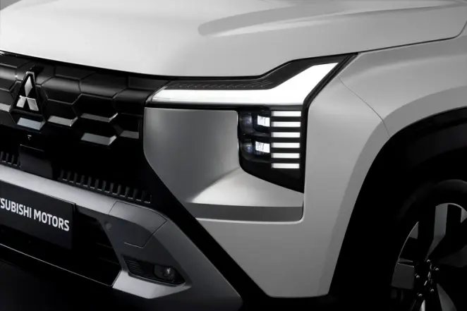 Desain dynamic shield khas kendaraan Mitsubishi Motors yang dipadukan dengan akrilik transparan pada grille memberikanrampilan elegan dan kokoh